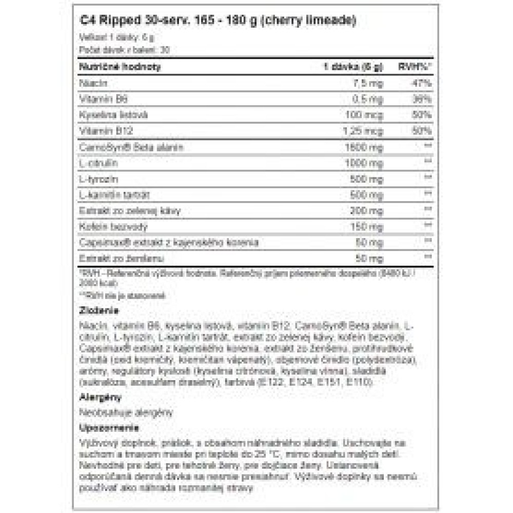 Spécifications CELLUCOR - C4 Ripped 180 g Cellucor